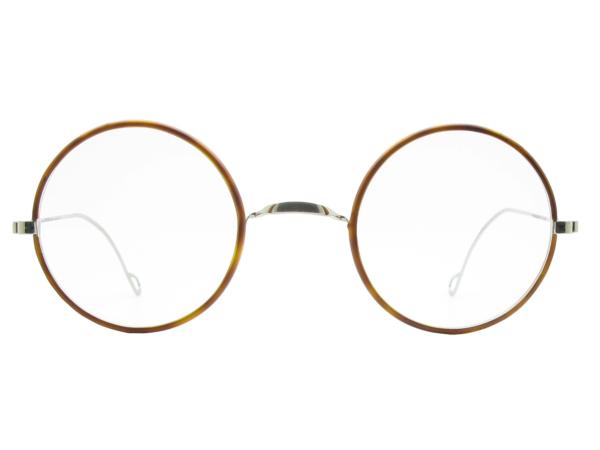 - monture Gouverneur métal fin, forme ronde, électroplacage de 1 micron de palladium, écaille claire foncée, taille 44, pont de 24mm, branches Pasteur droites.