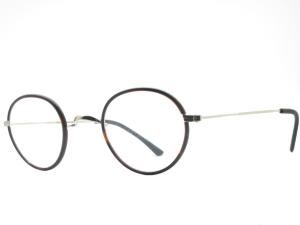 - Monture métal fin, forme Pantos, électroplacage de palladium brillant, Windsor acetate écaille foncée, branches "J" droites avec verres solaires G15, base 2, cat.3 anti-reflets.